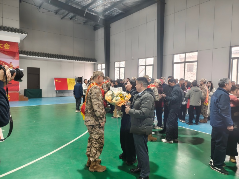大会表彰了预定新兵役前教育优秀新兵并颁发荣誉证书;新兵代表作了表态发言;随后,新兵们身着戎装、胸挂红花,肩披“一人参军,全家光荣”红绶带,怀揣着成为一名优秀军人和保家卫国的梦想,进行了庄严的入伍宣誓。
